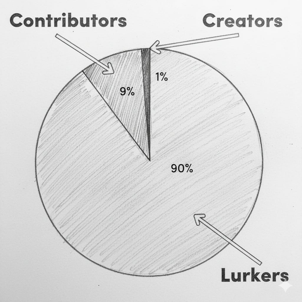 90% are Lurkers - These are people who consume 100% of everything on the internet but never create anything themselves